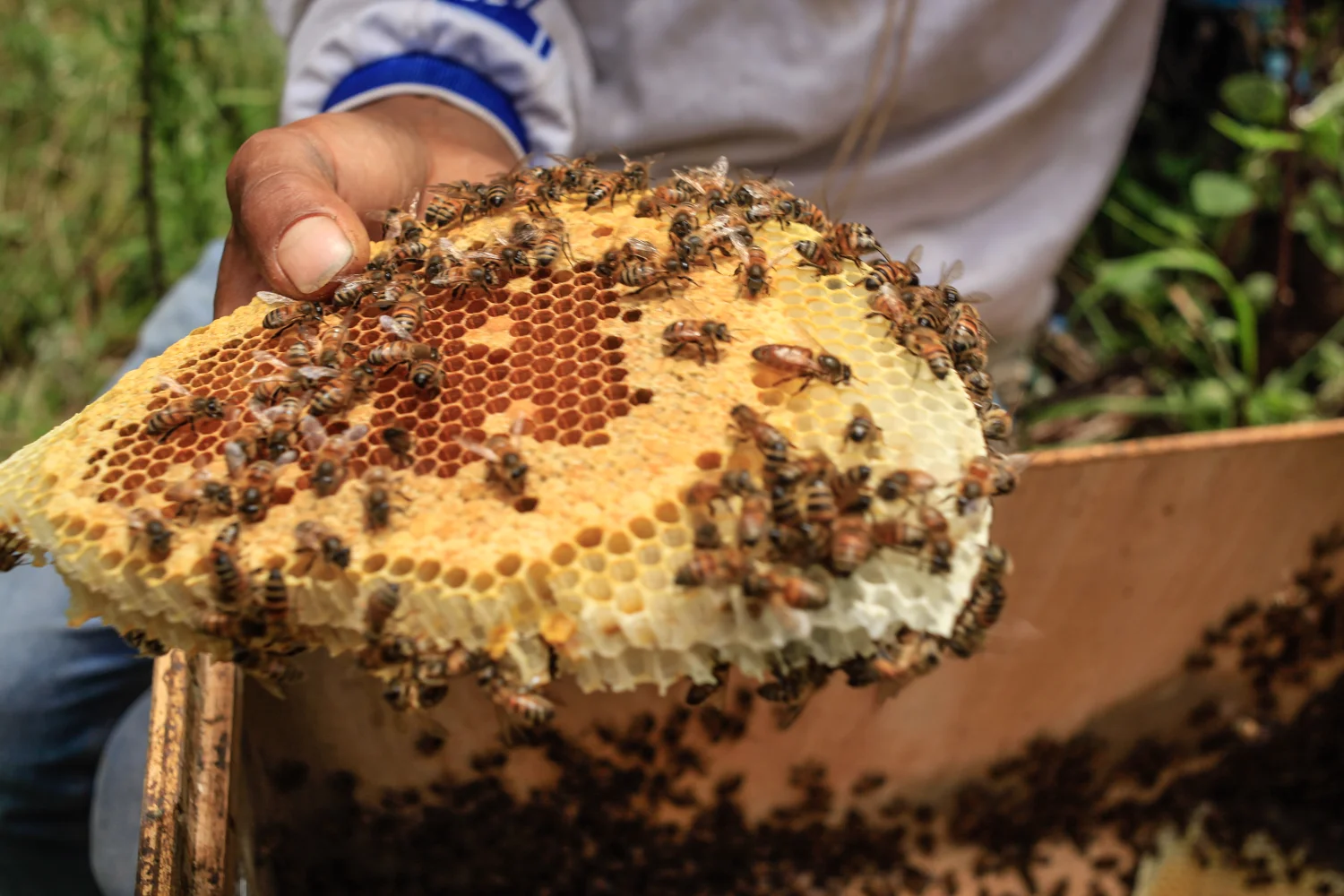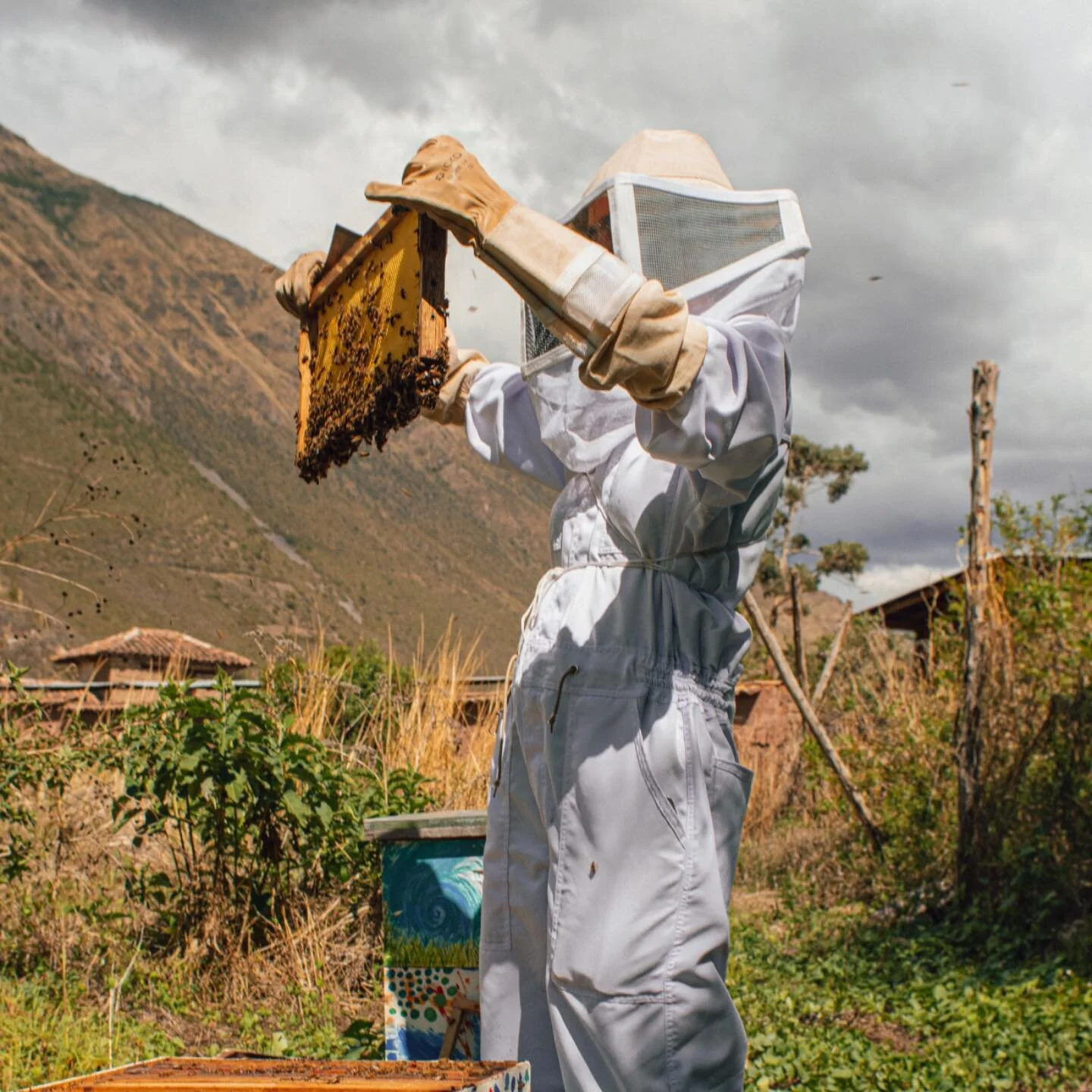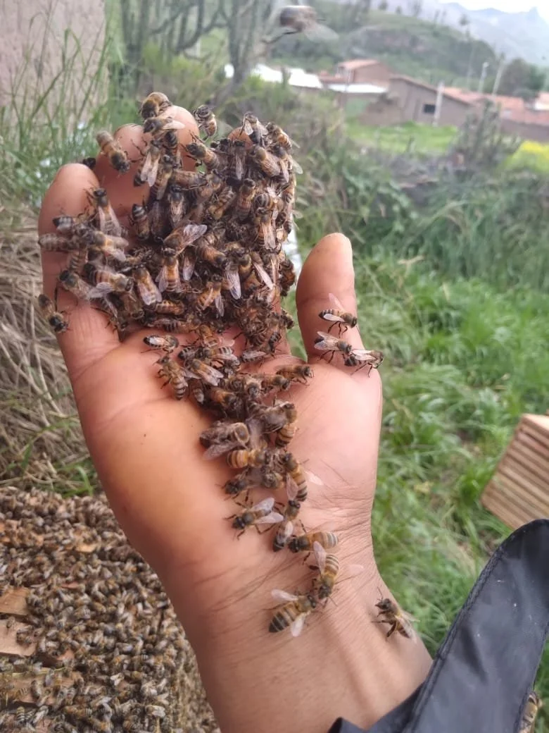After a 3 day trek to the high peak mountains and to the bees, under the hot sun Andean sun.. celebrating with chicha mixed with honey in a bullβs horn.
