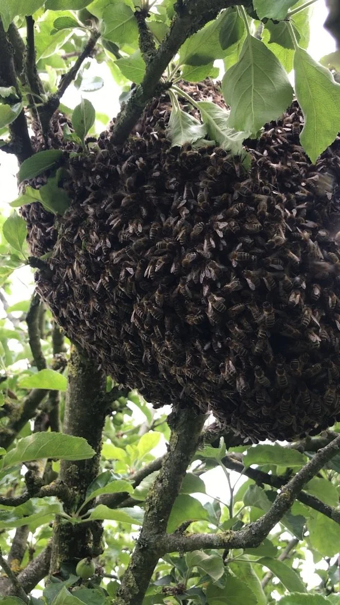 A swarm in the floripondio Red Angelβs Trumpet tree